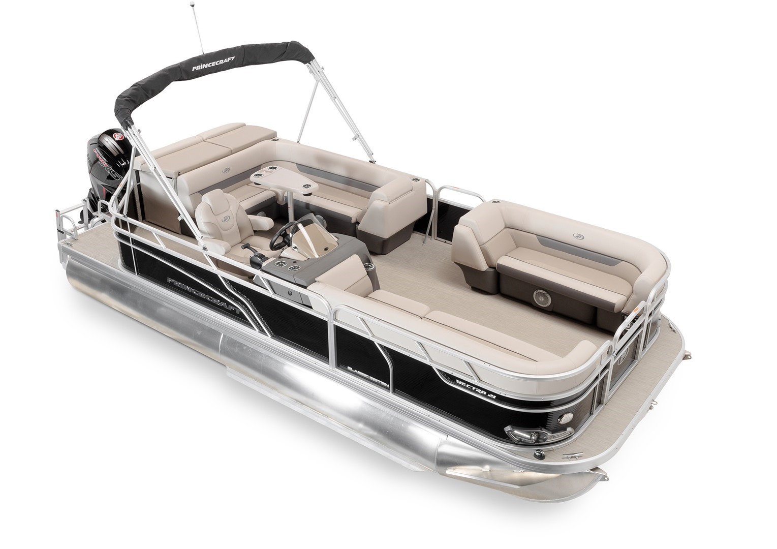 The Pinecraft Vectra 21 pontoon boat accommodates up to 10 people.